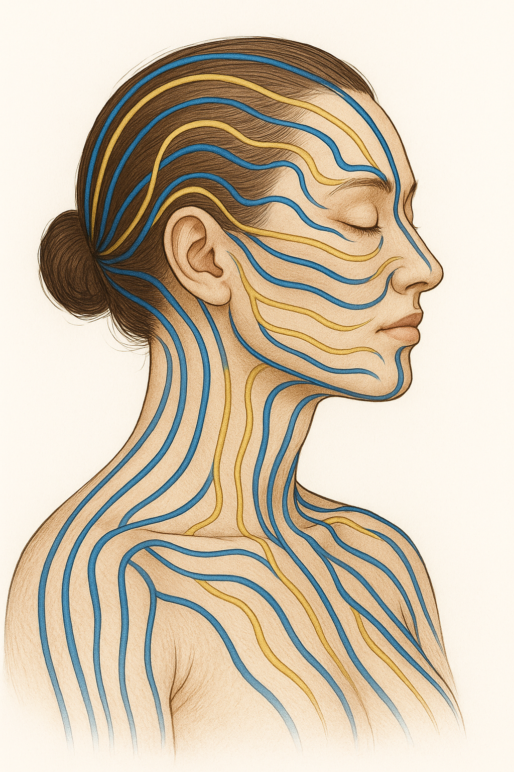 यह क्यों काम करता है: अधिकांश लोग गर्दन और कंधों के क्षेत्र में तनाव जमा करते हैं। जब ये जोन्स तनावग्रस्त होते हैं, तो चेहरे तक रक्त प्रवाह और लसीका प्रवाह बिगड़ जाता है। परिणाम — त्वचा का फीका रंग, सूजन, समय से पहले बुढ़ापा।